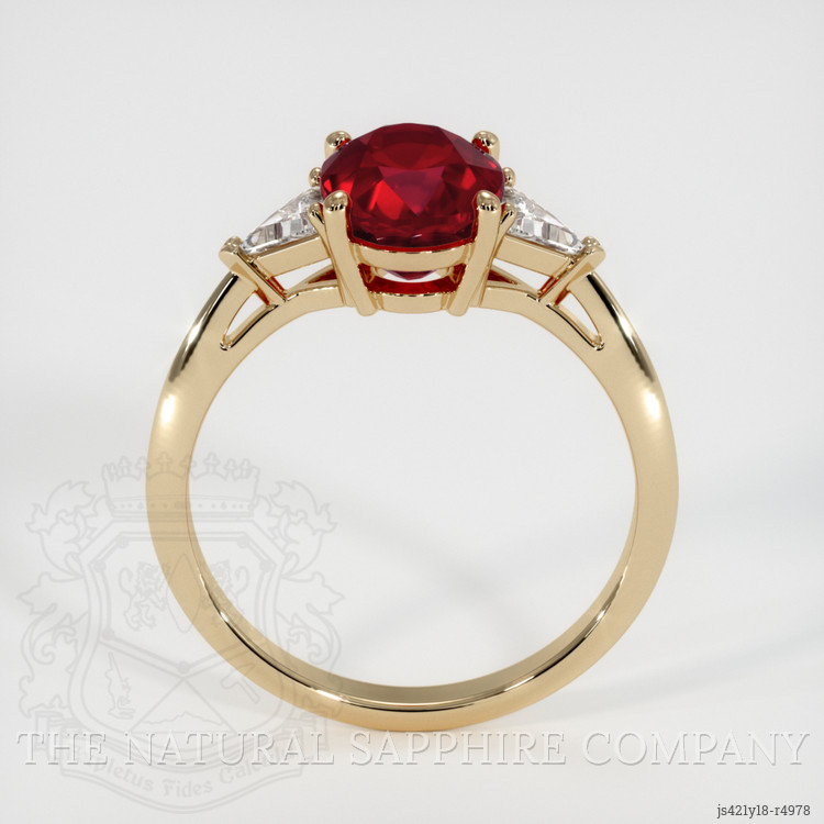 Three Stone Ruby Ring 2.35 Ct., 18K Yellow Gold