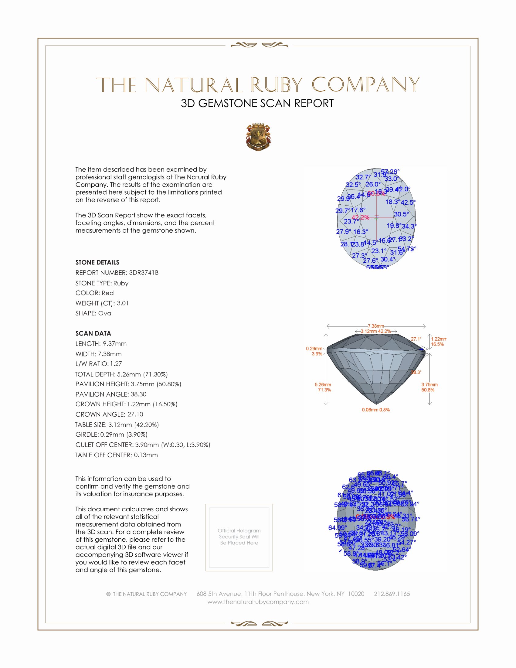 Our packaging, reports and documentation is refined, concise and reputable. Our reputation is our greatest asset, rest assured we don’t cut corners, please review our extensive reporting and specialty packaging for all our ruby items.
