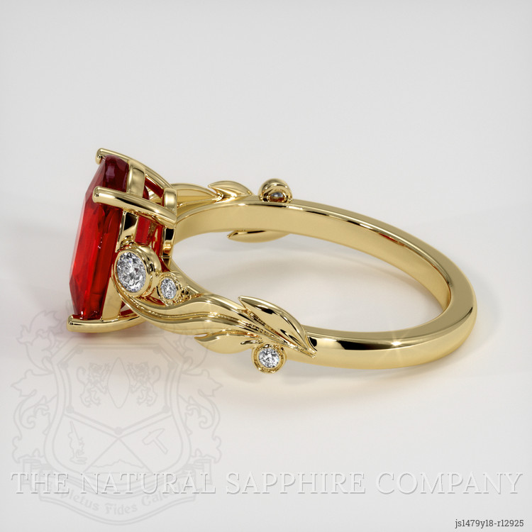 This exquisite ensemble is masterfully set in 18K yellow gold, reminiscent of historical pieces that adorned royalty, where warmth converges with brilliance. The gold band cradles the ruby with delicate grace, creating a setting as timeless as a sonnet penned in love’s first flush. The intertwining metal reflects the intricate craftsmanship and devotion that have become hallmarks of The Natural Ruby Company’s legacy.
