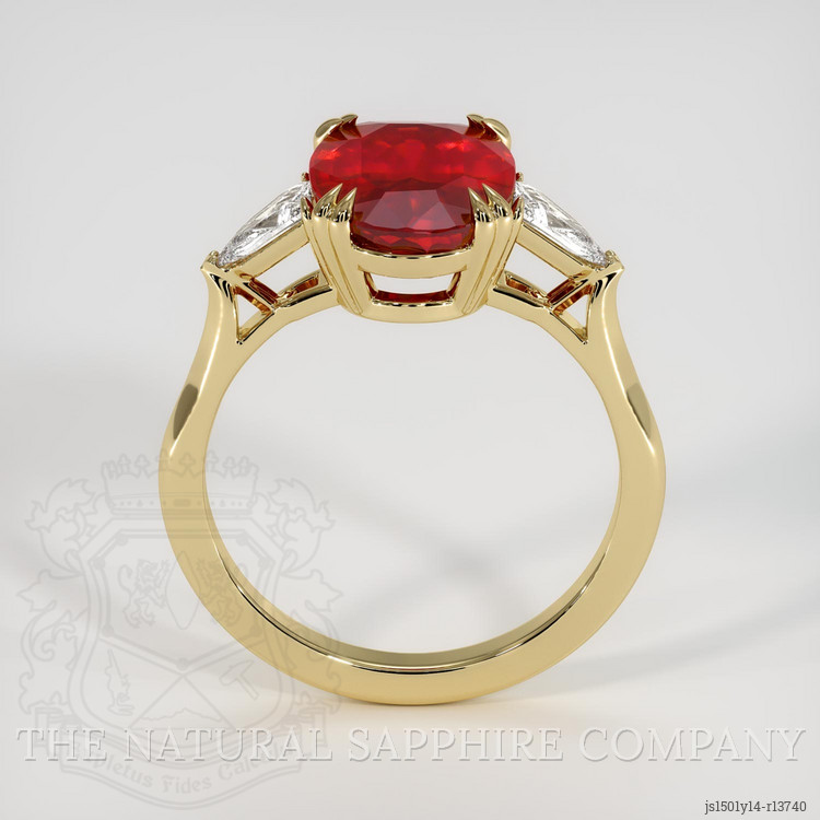 Three Stone Ruby Ring 4.01 Ct., 14K Yellow Gold