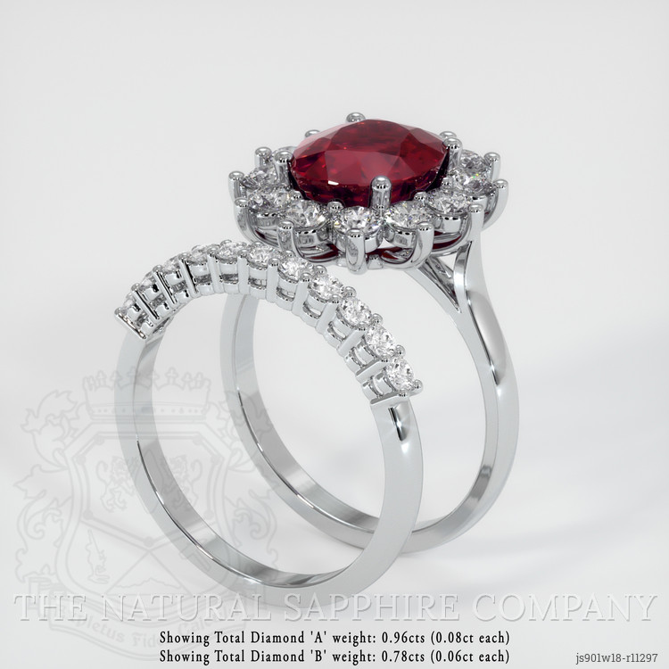 Halo Ruby Ring 4.04 Ct., 18K White Gold