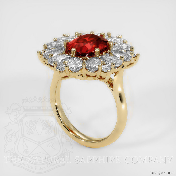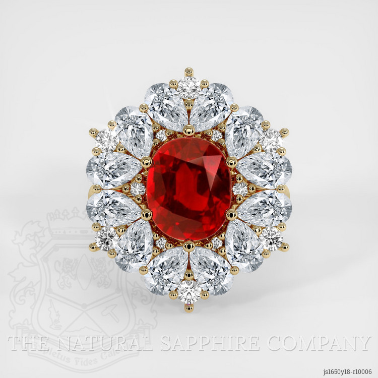 Halo Ruby Ring 4.10 Ct., 18K Yellow Gold