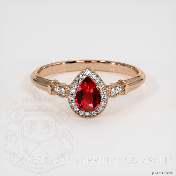 Introducing a masterpiece of elegance and sophistication from The Natural Ruby Company, a one-of-a-kind ring that symbolizes true rarity and timeless beauty. At its heart lies a breathtaking pear-shaped ruby sourced from the remarkable gem-rich lands of Madagascar, showcasing nature's splendid artistry in its purest form. Weighing 0.48 carats and expertly crafted with a mixed brilliant cut, this exquisite gemstone captivates with its vivid red hue and minimal inclusions, whispering tales of its exclusive origin and immaculate formation. Its natural allure is accentuated without enhancement, allowing its intrinsic beauty to shine in its most authentic form. For the discerning individual, this ruby represents an exclusive opportunity to join a select group of connoisseurs who appreciate gemstones in their truest glory.