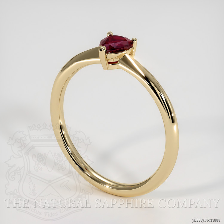 Since ancient times, rubies have been revered as symbols of passion and power. This exquisite ring from The Natural Ruby Company captures the essence of that timeless legacy. The centerpiece is a stunning 0.52 carat pear-shaped ruby, sourced from the rich lands of Mozambique. Its dimensions of 6.13 x 4.89 x 1.94 mm combined with a mixed brilliant cut give it a sparkle that mirrors the fire found only in the most precious of stones. With a clarity grade of very slightly included and dark color saturation, this ruby possesses an unmistakable depth of color and a mystique that has enchanted gemstone lovers throughout the ages. Enhanced by expert heat treatment and finished with an excellent polish, this gem embodies a captivating allure.