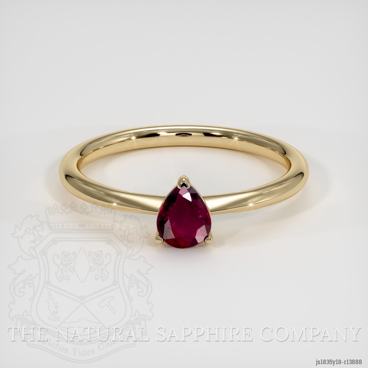 Since ancient times, rubies have been revered as symbols of passion and power. This exquisite ring from The Natural Ruby Company captures the essence of that timeless legacy. The centerpiece is a stunning 0.52 carat pear-shaped ruby, sourced from the rich lands of Mozambique. Its dimensions of 6.13 x 4.89 x 1.94 mm combined with a mixed brilliant cut give it a sparkle that mirrors the fire found only in the most precious of stones. With a clarity grade of very slightly included and dark color saturation, this ruby possesses an unmistakable depth of color and a mystique that has enchanted gemstone lovers throughout the ages. Enhanced by expert heat treatment and finished with an excellent polish, this gem embodies a captivating allure.