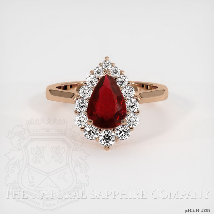 The Natural Ruby Company is delighted to present a distinguished ring that showcases a ruby of extraordinary charm. This ruby, identified by Stone ID R13338, is a stunning specimen weighing 1.01 carats, with origins tracing back to the renowned mines of Mozambique. It captivates onlookers with its rich red hue and boasts measurements of 8.29 mm in length, 5.47 mm in width, and a depth of 2.97 mm, ensuring a presence that is both impressive and elegant.