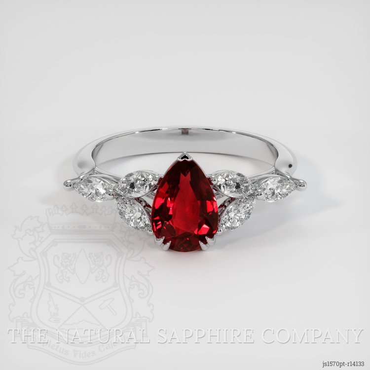 Introducing a masterpiece of unparalleled beauty and exclusivity—the exquisite ruby and diamond ring from The Natural Ruby Company. This ring is not merely a piece of jewelry but a testament to timeless elegance and rare artistry. At its heart lies a stunning 1.01 carat pear-shaped red ruby, sourced from the rich lands of Mozambique. This gem, with dimensions of 7.45 x 5.21 x 3.14 mm, boasts an exquisite mixed brilliant cut that enhances its clarity and vivid color saturation. Its eye-clean clarity, evaluated at eye level, ensures that no imperfections mar its pristine surface, while its excellent polish contributes to its breathtaking allure.