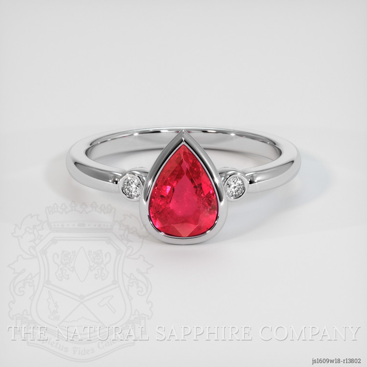 Indulge in the mesmerizing allure of our exquisite ring, a true masterpiece crafted by The Natural Ruby Company. Imagine wearing a piece of jewelry that not only dazzles but tells a story, an emotional journey marked by elegance and passion. At the heart of this stunning ring lies a transparent 1.43 carat pear-shaped ruby, sourced responsibly from the rich lands of Mozambique. This gemstone is more than just a jewel; it's a vibrant expression of love and joy, its vivid saturation capturing the essence of a sunset's bloom. Every facet of this mixed brilliant cut ruby reflects a unique dance of light, drawing the eye to its flawless clarity and impeccable polish, promising to evoke feelings of bespoke luxury at every glance.