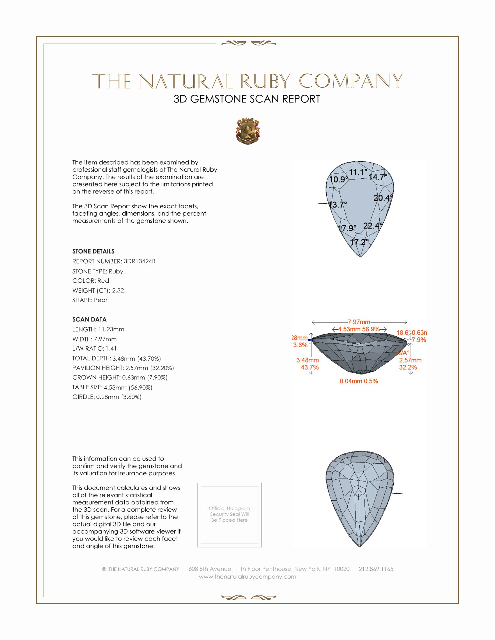 Our packaging, reports and documentation is refined, concise and reputable. Our reputation is our greatest asset, rest assured we don’t cut corners, please review our extensive reporting and specialty packaging for all our ruby items.