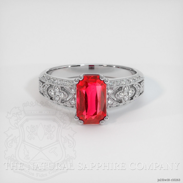 Antique Style Ruby Ring 2.06 Ct., 18K White Gold