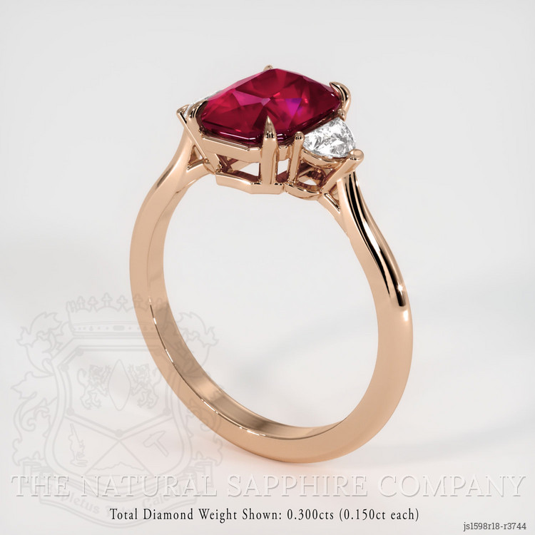 Three Stone Ruby Ring 2.31 Ct., 18K Rose Gold