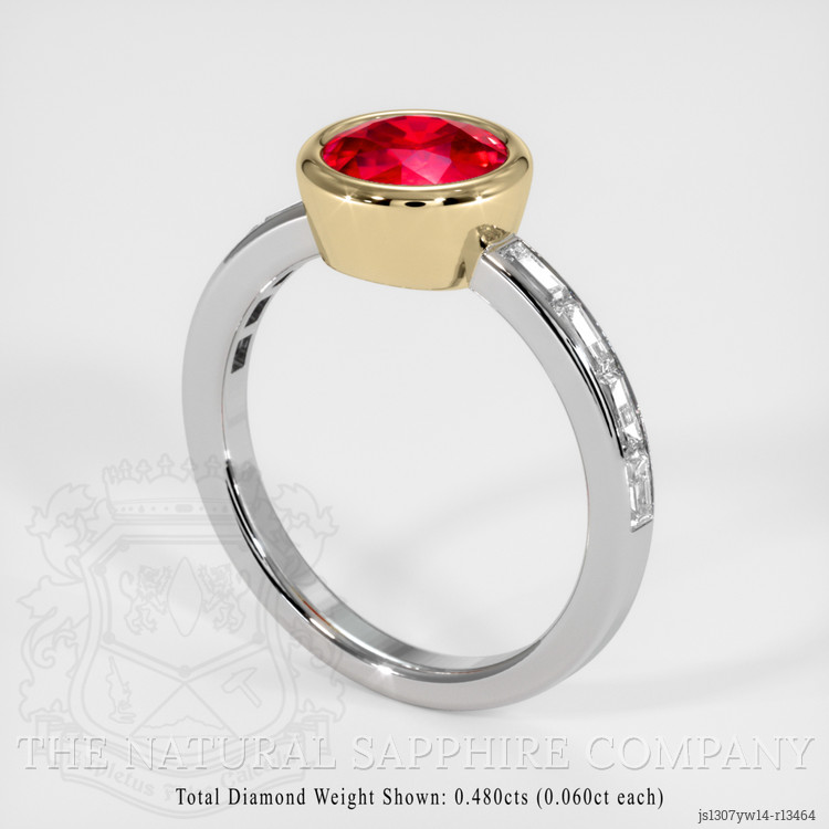 Accent Stones Ruby Ring 1.38 Ct., 14K Yellow & White
