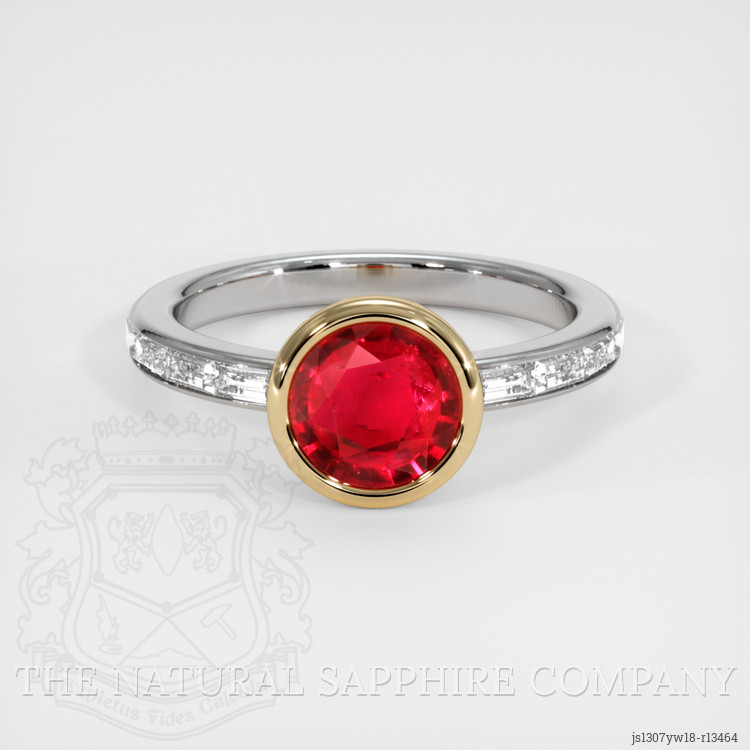 Accent Stones Ruby Ring 1.38 Ct., 18K Yellow & White