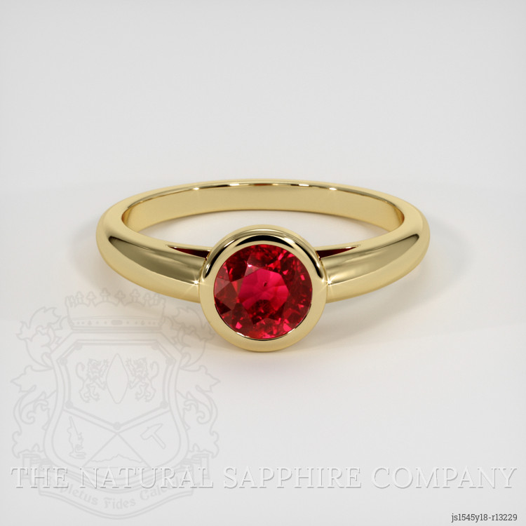 The stone's origin from Mozambique lends an additional touch of prestige and rarity, making it a unique and cherished addition to any jewelry collection. Set entirely in 18K yellow gold, the ring exudes a warm and inviting glow that complements the ruby's intense hue. The excellent polish of the gold band ensures a smooth and lustrous surface that feels comfortable and secure around your finger.