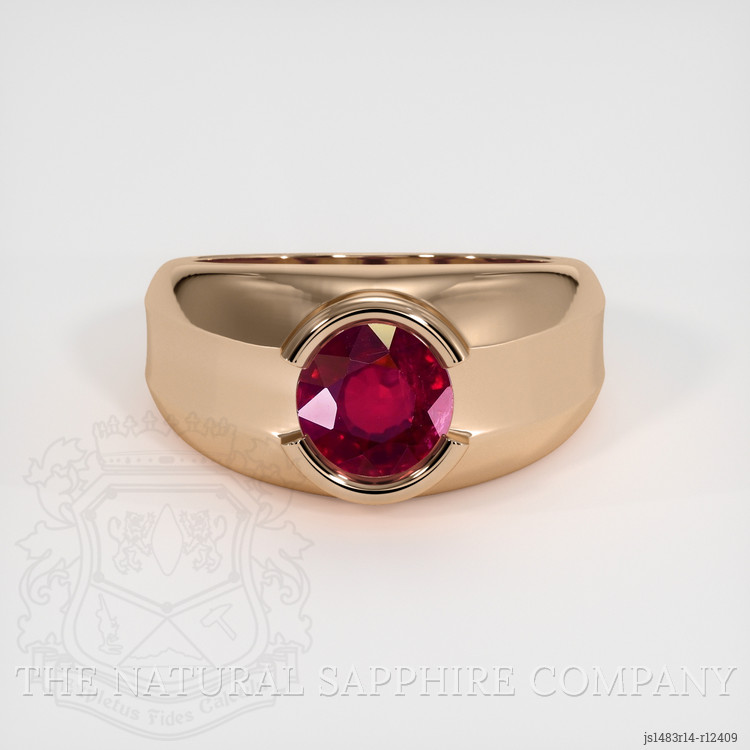This exquisite men's ring is designed to meet the highest expectations of those searching for a truly exceptional piece of jewelry. Imagine a ring that captures attention with its stunning beauty while offering the durability needed for everyday wear. This magnificent ring, the perfect solution to your quest for elegance and strength, features a breathtaking 1.56 carat round red ruby. Its dimensions are 6.47 x 6.35 x 4.39 mm and it boasts a mixed brilliant cut. The clarity of the ruby is very slightly included and it dazzles with vivid color saturation. The excellent polish amplifies its allure. Sourced from the renowned mines of Mozambique, the ruby is not only a symbol of elegance but also a testament to quality. This gemstone is securely set in 18K rose gold, a metal known for its enduring beauty and resilience. This ring combines the luxurious hue of rose gold with the fiery brilliance of the ruby, creating a masterpiece that speaks of sophistication and exquisite taste. Whether enhancing a personal collection or signifying a meaningful commitment, this ring ensures that your search for the extraordinary ends here.