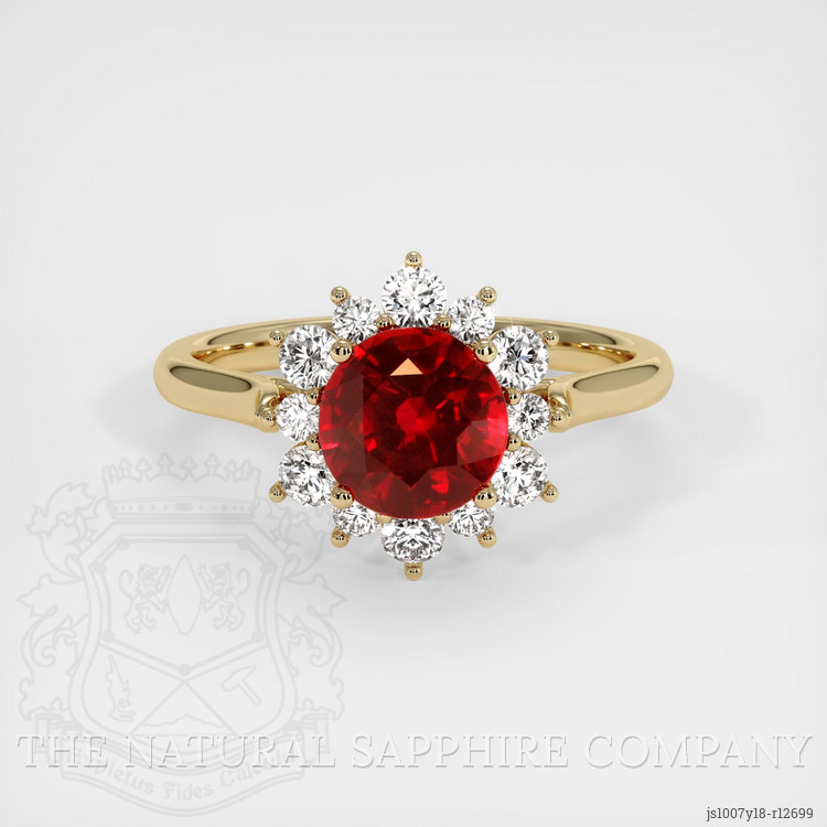 Halo Ruby Ring 1.58 Ct., 18K Yellow Gold