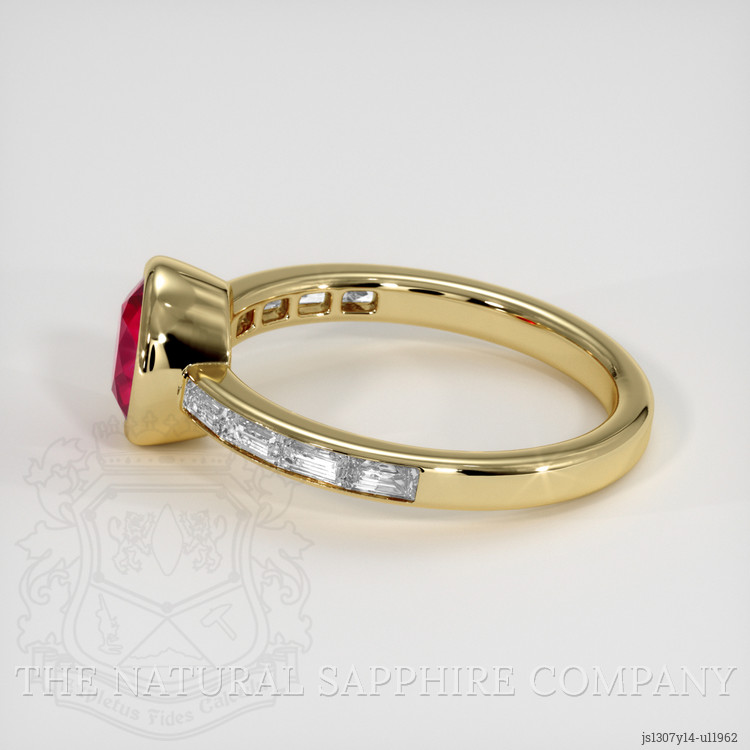Nestled in the luxurious warmth of pristine 18K yellow gold, the entire setting becomes a rich canvas for the brilliance of these gemstones. The gold's sumptuous radiance harmonizes with the gem's fiery hue, evoking a sense of royalty and timelessness. As metal and stone come together, the ring itself becomes an emblem of eternal commitment—a profound emblem of a love story etched in gold and complemented by the passionate hue of the ruby. By choosing this ring from The Natural Ruby Company, one acknowledges an appreciation for the finer things in life, signaling both achievement and an elevated sense of personal style.