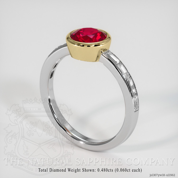 Adding to the allure of this unique piece, the ruby is accompanied by white baguette diamonds expertly set along the band. Weighing approximately 0.48 carats, these diamonds are not merely accents but essential elements that elevate the ring's overall sophistication. With a clarity range of VS1 to VS2 and a color grade of E, our diamonds significantly outperform typical selections. Competitors may offer diamonds of lesser grade and brilliance, but at The Natural Ruby Company, we ensure only the finest make it into our collections. These diamonds harmonize perfectly with the main ruby, enhancing its robust color while offering their own radiant sparkle.