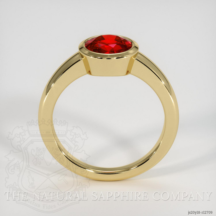 Setting off the brilliance of the ruby is the ring itself, crafted entirely in 18K yellow gold. This luxurious metal, known for its durability and timeless appeal, creates a perfect contrast to the vivid red of the ruby. The ring's design is sleek and modern, yet it retains a classic elegance that makes it suitable for any occasion. The gold band is smooth and polished to a high shine, ensuring it feels as good as it looks.