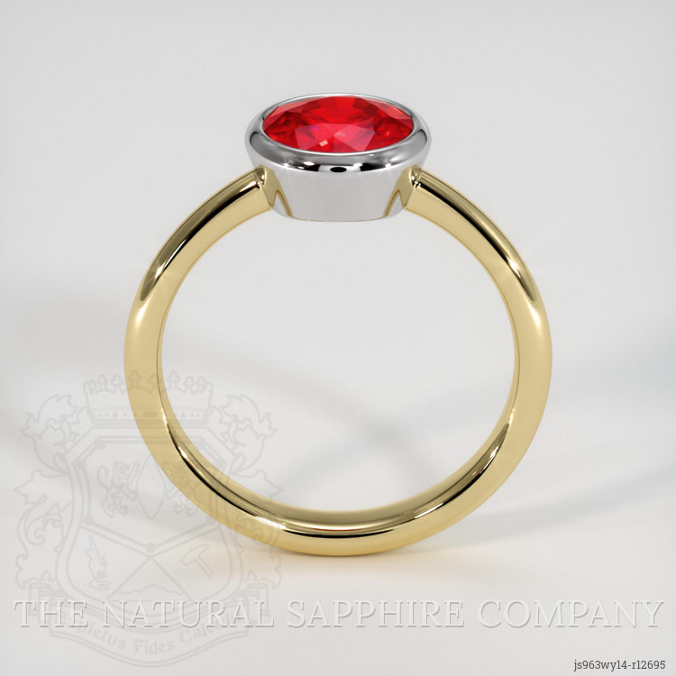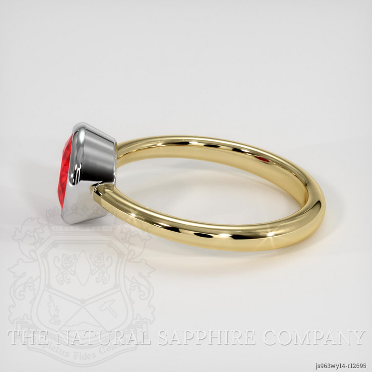 This exquisite gemstone is set in a sophisticated 18K white gold and 18K yellow gold ring. The fusion of the two types of gold provides a contemporary yet timeless appeal, highlighting the ruby's vivid red color. The white gold accentuates the ruby's fire, while the yellow gold offers a warm contrast, making the ring a versatile piece that complements both formal and casual attire.