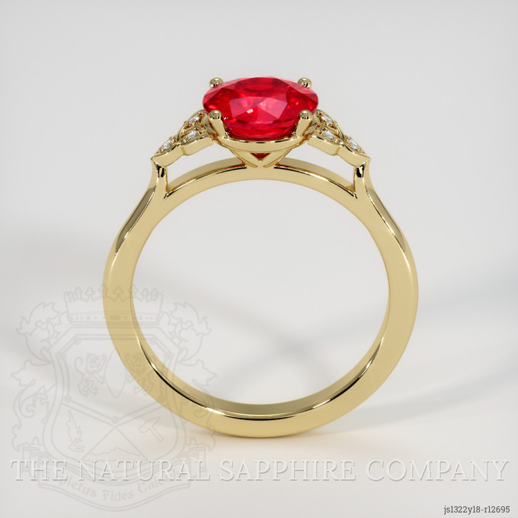 Flanking the ruby are delicately set white round diamonds, each weighing approximately 0.045 carats. With a clarity ranging between VS1 and VS2 and a color grade of F, these diamonds offer exceptional brilliance and purity. Their subtle sparkle complements the ruby, creating a cohesive and captivating design. The choice of 18K yellow gold not only ensures durability but also reflects the timeless quality that customers have come to expect from The Natural Ruby Company. Together, these elements form a ring that is more than just a piece of jewelry; it is a symbol of love, passion, and commitment.