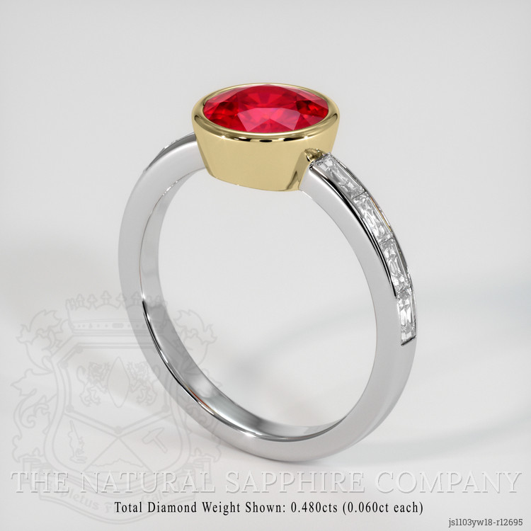 What truly sets this ring apart is the harmonious blend of metals in its construction. Crafted in 18K yellow gold and 18K white gold, the band melds modern sophistication with timeless appeal, ensuring it stands out with a finesse that is both bold and graceful. The yellow gold bezel wraps around the ruby effortlessly, allowing the stone to command attention while the white gold juxtaposes the fieriness of the ruby with the cool brilliance of the diamonds. This thoughtful design choice ensures that the ring not only showcases the most splendid ruby and diamonds available but also has an enduring style meant to be cherished across generations. Our artisans at The Natural Ruby Company bring their vast expertise to each detail, ensuring exceptional craftsmanship that enhances the unique allure of these premium materials.