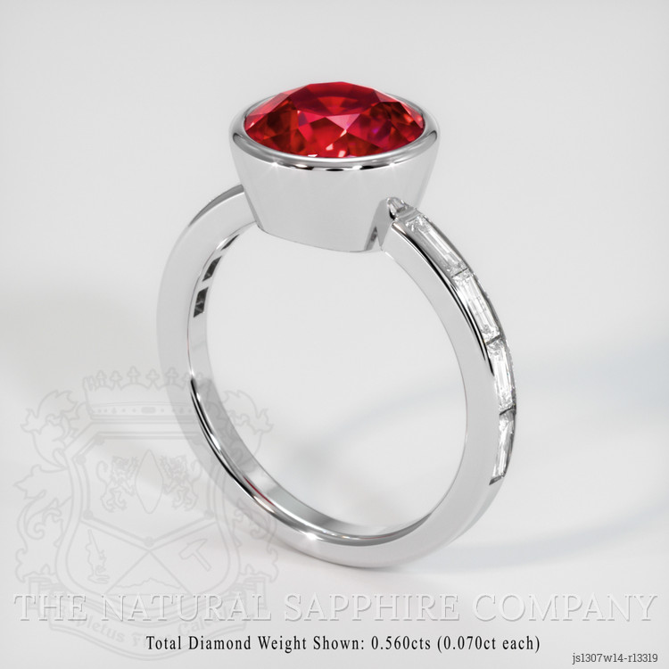 Also featured in the ring: White baguette (straight) shaped diamonds, weighing approx 0.56 carats, clarity Very Slightly Included (VS1, VS2) and a color grade of E.