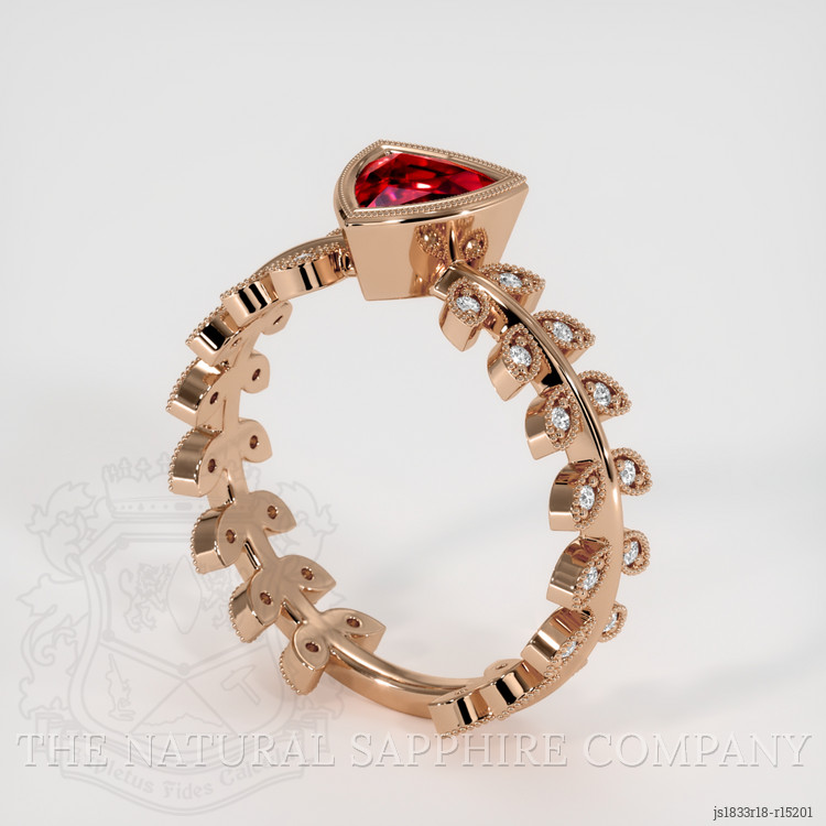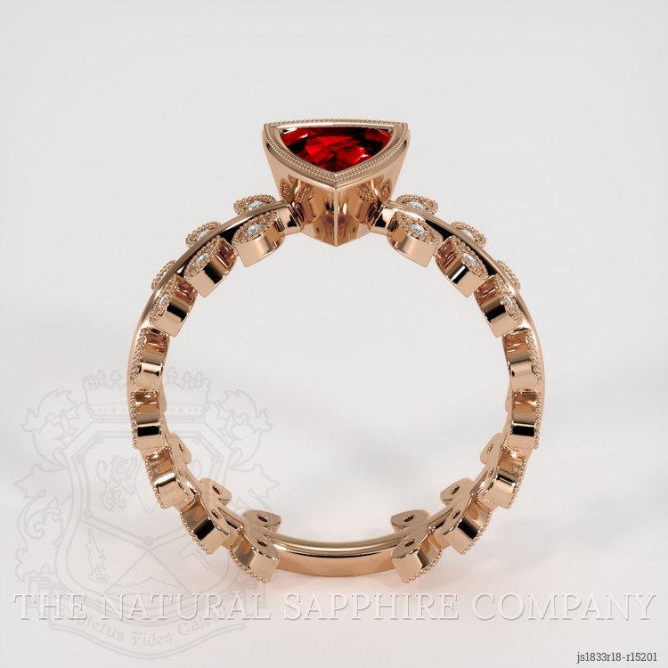 Introducing a masterpiece of elegance and rarity from The Natural Ruby Company—an exquisite 14K rose gold ring designed to captivate and enchant. At its heart lies a stunning GIA certified red ruby, a 1.53 carat trillion-shaped wonder, sourced from the legendary gem mines of Thailand. This remarkable ruby is not just a gemstone, it is a piece of art carved by nature and perfected by human craftsmanship. With dimensions of 7.07 x 6.60 x 4.37 mm, its mixed brilliant cut illuminates with every movement, while the vivid color saturation offers a rich, fiery red that is truly captivating. Slight inclusions bear witness to the ruby’s natural origin, adding character and authenticity. The stone’s excellent polish reflects light with unparalleled brilliance, a testimony to its exquisite beauty and quality.