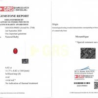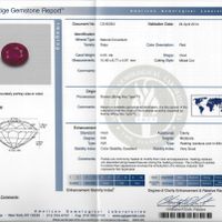 A ruby certification is an official gemological report issued by a laboratory that examines and grades the gemstone based on its color, clarity, cut, carat weight, origin, and treatments.