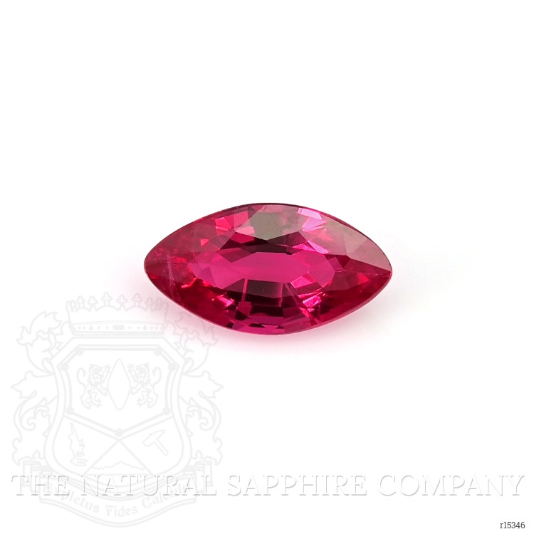 This natural ruby is a transparent 0.26 carat marquise measuring 5.77 by 3.09 by 1.91 millimeters, cut in a mixed brilliant style to balance scintillation and outline. The stone presents a pinkish red hue with vivid color intensity and an excellent polish. Clarity is graded very very slightly included, evaluated at eye level, which provides visual cleanliness while preserving natural internal characteristics. The proportions give a lively face up appearance, and the mixed brilliant faceting enhances return of light along the elongated marquise silhouette. The specimen has undergone routine heat treatment, a standard and stable enhancement in ruby trade, and is sourced from Mozambique, a region noted for producing stones with strong color saturation and attractive tone. This ruby is suitable for precision settings where its marquise shape can be displayed without compromise, and its small carat weight makes it ideal for accent placements or for use in delicate bespoke pieces.