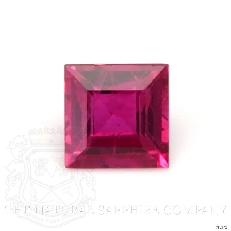 As a representative of The Natural Ruby Company, I am pleased to present a finely crafted, transparent purplish red ruby weighing 0.28 carat, with precise dimensions of 3.63 by 3.61 by 2.10 millimeters. The gem is cut in a princess shape, a contemporary square outline that emphasizes symmetry and crisp facet junctions, and it displays vivid color intensity that reads as a strong, saturated purplish red under standard daylight. The overall presentation is one of clarity and vivid hue, qualities sought by collectors and jewelers alike, and the excellent polish enhances the stone surface, allowing the color to present cleanly through the table without surface hazing. The Natural Ruby Company discloses that the stone is heat treated, a common and stable enhancement applied to rubies to improve color uniformity and remove brownish overtones, and the origin is Mozambique, a locality known for producing rubies with attractive saturation and modern market appeal.