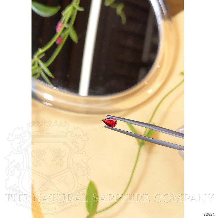 When compared to other rubies on the market this stone offers a superior balance of natural origin, optical performance, and honest enhancement, synthetic rubies can show very even color, but they often lack the subtle internal life and natural growth patterns that create depth in a natural gem, glass filled or heavily fractured material may appear bright under certain lighting, but the clarity treatments and fillers compromise longevity and stability, our heat treatment is a widely accepted enhancement that deepens the natural red without obscuring the stone provenance from Thailand, for buyers concerned with value, a vivid color intensity in a transparent stone of this size and shape with excellent polish represents a rare combination, the 0.32 carat pear is a versatile gem size that sits beautifully in delicate settings and also plays well in cluster or halo arrangements to amplify presence, because the cut maximizes light return the perceived size and brightness of the gem often exceed what the carat weight alone would suggest, and because the stone comes from the careful selection process at The Natural Ruby Company, you are receiving a gem that has been chosen for its visual impact and structural integrity, this makes it a sensible purchase for anyone seeking a natural ruby that outshines commonly available alternatives, both in immediate appearance and in long term wear.