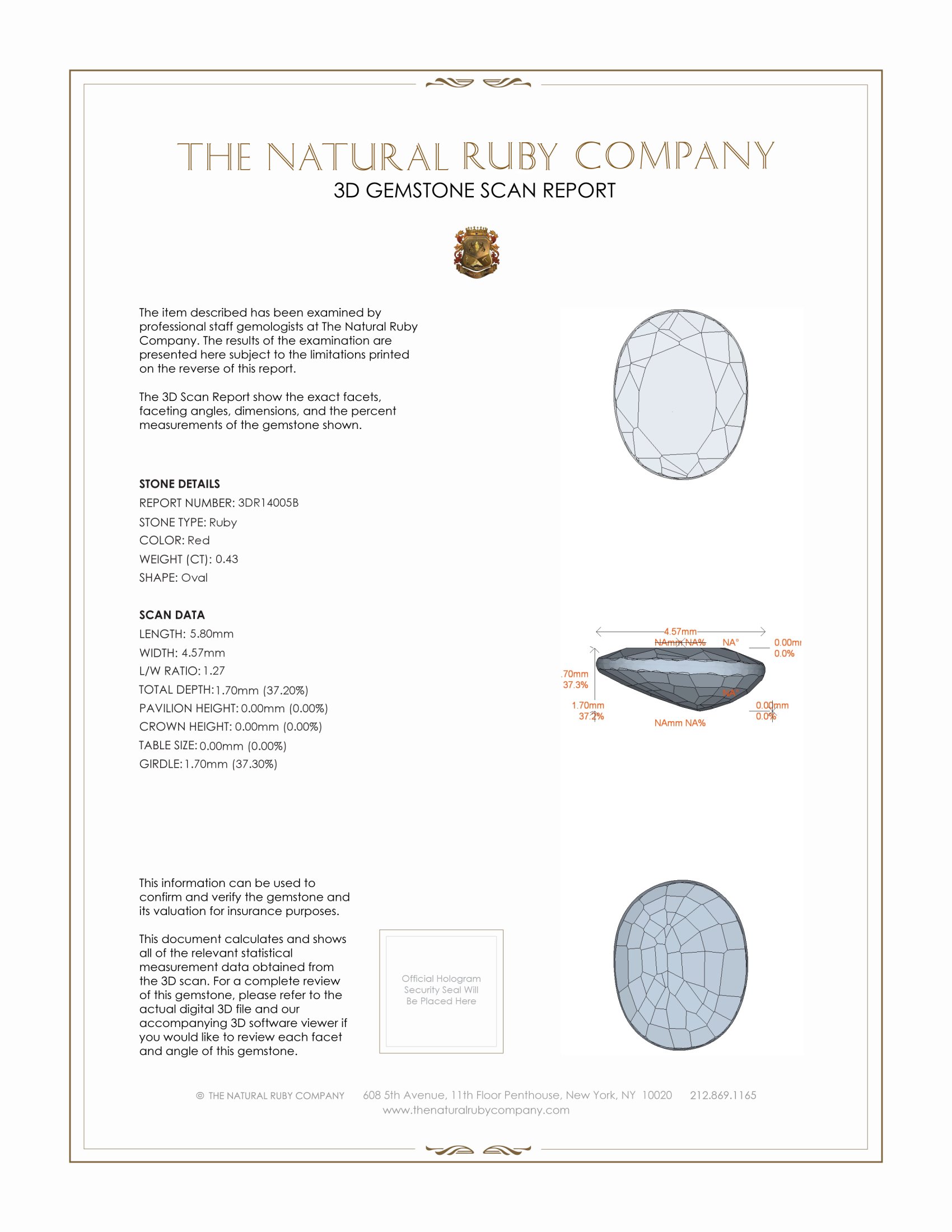 When you choose this ruby from The Natural Ruby Company, you weave together the threads of love, passion, and excitement. This is not just a selection; it's a commitment to granting someone, or indeed yourself, a slice of timeless beauty. Let this ruby sing the melodies of your emotions, capturing moments that last forever, creating a cherished legacy. Embrace its unrivaled beauty and let it be the vessel of your deepest sentiments, a jewel that forever stays close to the heart.
