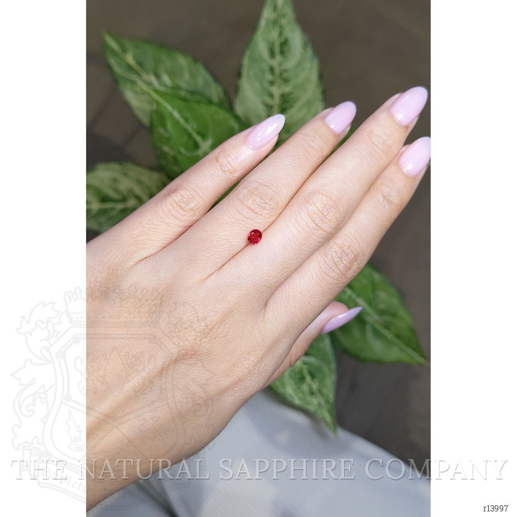 Nestled deep within the verdant landscapes of Mozambique lies a treasure that the earth has cradled for centuries, waiting for the discerning eye of an admirer to appreciate its beauty. The "Enchanting Sunset Ruby," brought to you by The Natural Ruby Company, captures the mesmerizing allure of a setting sun—not just due to its intense red hue but also for the tales whispered through its facets and the history enshrined in every inclusion. This 0.44-carat gemstone stands as a testament to nature's artistry, possessing dimensions of 4.61 x 3.83 x 2.47 mm that are proportionate and balanced, much like its story that has unfolded over millennia.