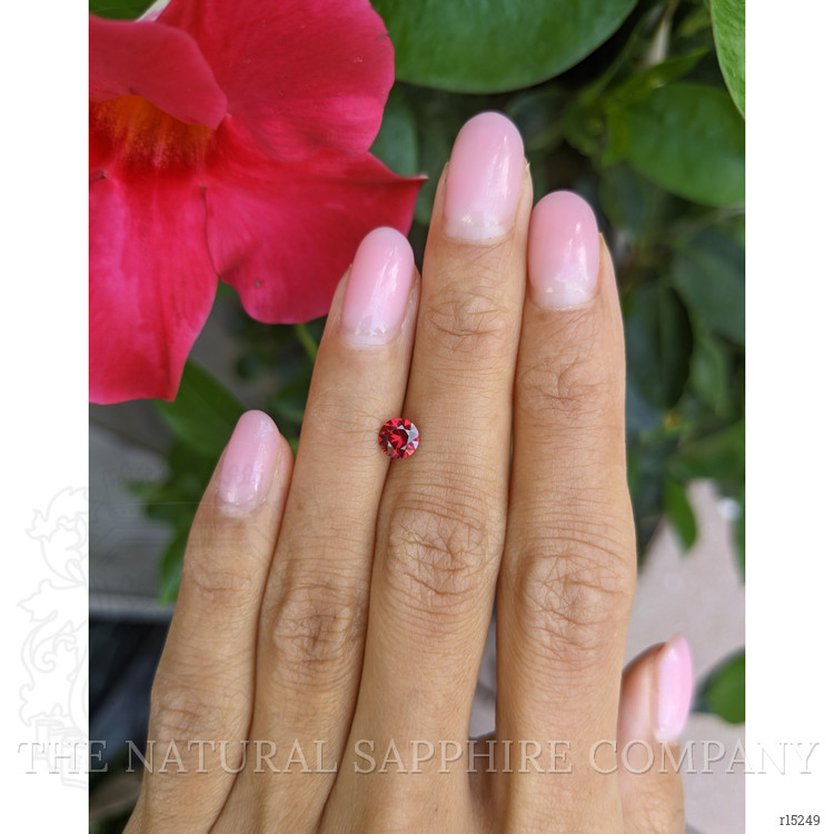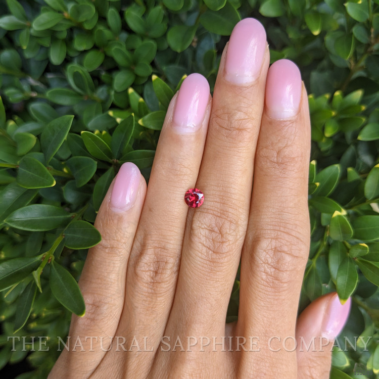 Introducing an exquisite treasure of nature, our transparent 0.58-carat round-shaped red ruby from The Natural Ruby Company captivates the senses with its vibrant allure and unmatched brilliance. Sourced from the rich soils of Mozambique, this rare gemstone boasts dimensions of 5.16 x 5.11 x 3.14 mm, with a mixed brilliant cut and vivid color intensity that is nothing short of spectacular. Graded as very slightly included, the ruby’s clarity ensures that the naked eye sees nothing but pure, radiant beauty. Enhanced by professional heat treatment, its colors are brought to their fullest potential, making it an invaluable addition to any fine jewelry collection.