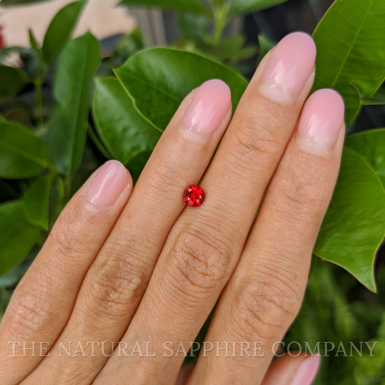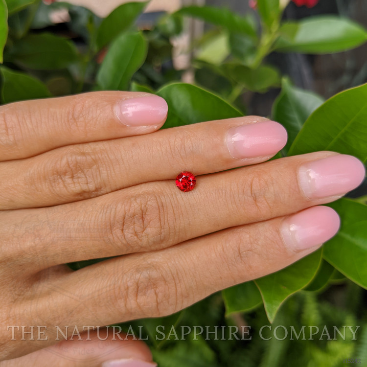 At The Natural Ruby Company, we take pride in presenting gems that epitomize the exquisite blend of nature’s artistry and human craftsmanship. Our featured transparent 0.59 carat round red ruby is a perfect embodiment of this blend. With precise dimensions of 4.95 x 4.91 x 3.38 mm, this gemstone showcases a modified brilliant cut that enhances its inherent brilliance and sparkle. The facets are artistically arranged, optimizing the stone’s ability to handle light and produce a dazzling display of fire and scintillation.