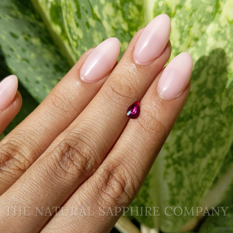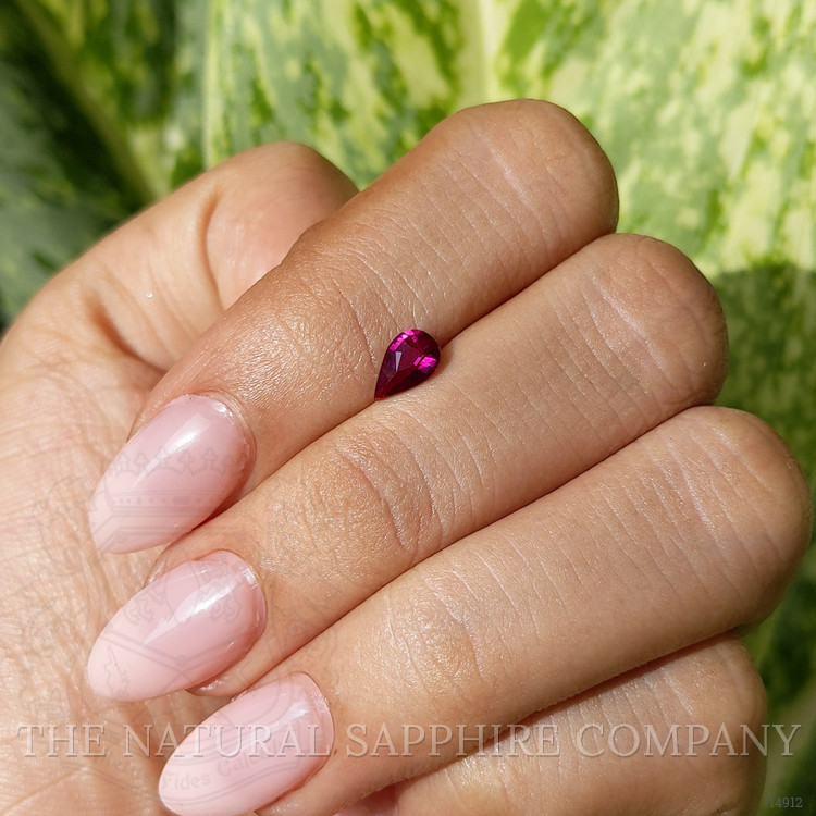 The pear-shaped purplish red ruby of 0.63 carats, offered by The Natural Ruby Company, exemplifies the pinnacle of natural gemstone quality and beauty. Mined in the renowned gemstone fields of Madagascar, this exquisite ruby extends its pedigree with an arresting hue and precision-cut brilliance. Possessing dimensions of 7.10 x 4.48 x 2.78 mm, the ruby is sculpted into a mixed brilliant cut that heightens its inherent luminosity. This cut optimizes the light return, emphasizing the ruby's vivid color intensity which is further enhanced through an excellent polish. The resulting luster and brilliance align with the esteemed natural characteristics expected from carefully selected rubies.