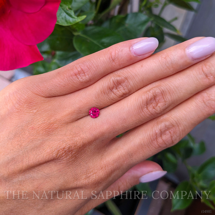 Deep in the heart of the ancient Mozambican landscape, our exquisite 0.75 carat round red ruby began its journey. Forged over millennia beneath the earth's surface, this gem boasts vivid color intensity and flawless transparency. At The Natural Ruby Company, we pride ourselves on selecting gemstones that not only meet the eye’s delight but also captivate the romantic heart. Our Mozambique ruby captivates with its rich, passionate hue—a timeless token of love and commitment that stands apart from other stones available in the market. Its fiery brilliance is owed to a meticulously executed mixed brilliant cut that enhances its natural luster while the clarity grade of very very slightly included ensures a captivating sparkle despite close inspection.