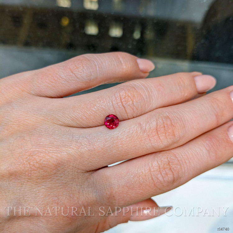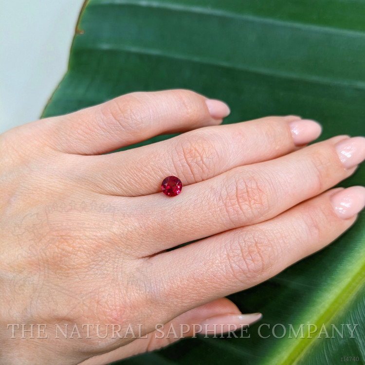 In the heart of Mozambique, where the earth whispers ancient stories of passion and beauty, lies a treasure of nature—a ruby so enchanting that it mirrors the very soul of romance. At The Natural Ruby Company, we present to you a gem that captures not just light, but also the essence of love's deep and enduring flame. This exquisite 0.82-carat round ruby, with dimensions of 5.47 x 5.37 x 3.28 mm, dazzles with its mixed brilliant cut—a dance of facets that reflect a rainbow of fiery reds and crimsons. Its vivid color intensity is as vibrant as a sunset over a serene landscape, catching every gaze and imagination with its allure.