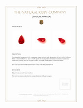 Our packaging, reports and documentation is refined, concise and reputable. Our reputation is our greatest asset, rest assured we don’t cut corners, please review our extensive reporting and specialty packaging for all our ruby items.