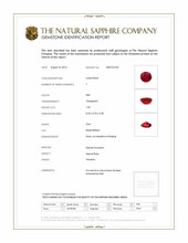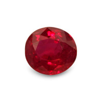 One beautiful transparent 1.02 carat oval shape red ruby with dimensions of 6.23 x 5.70 x 3.28 mm. It has a mixed brilliant cut, and a clarity grade of very slightly included (evaluated at eye level), vivid color intensity, and an excellent polish. The origin of this ruby is Tanzania.