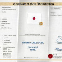 One beautiful transparent GIA certified Purplish Red 1.54 carat round shape purplish red ruby with dimensions of 6.49 x 6.07 x 4.35 mm. It has a mixed brilliant cut, and a clarity grade of very slightly included (evaluated at eye level), vivid color intensity, and an excellent polish. The origin of this ruby is Mozambique.