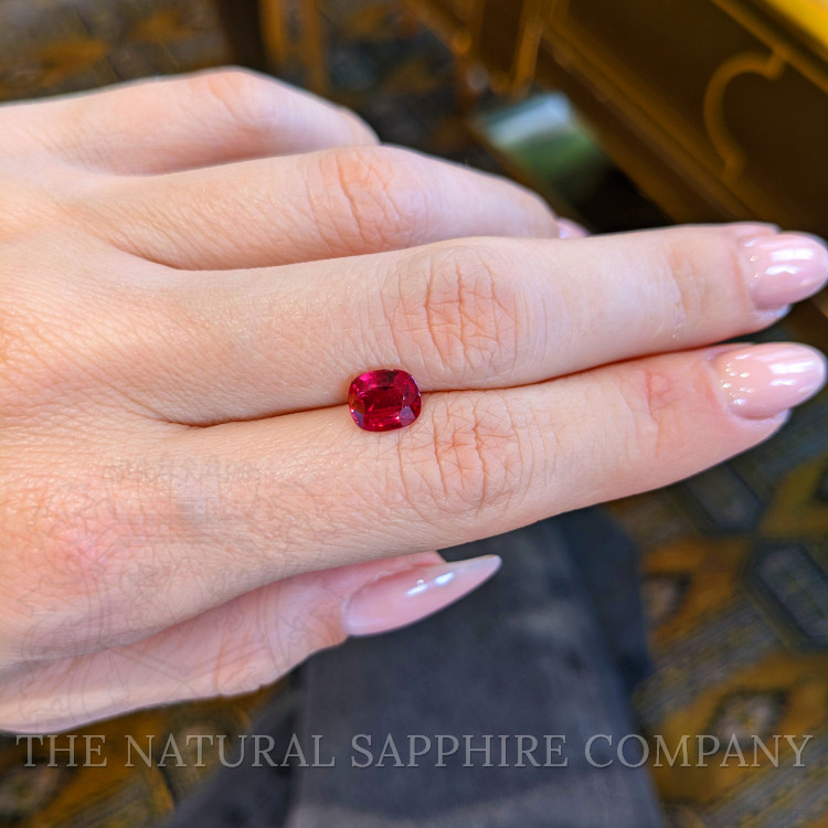 Introducing a captivating marvel from The Natural Ruby Company, this exquisite 1.56-carat cushion-shaped red ruby is the epitome of elegance and allure. For those in pursuit of a gemstone that speaks to the heart, look no further. This ruby, with its perfect blend of fiery red hues and timeless charm, promises to fulfill the desires of any collector or connoisseur seeking unparalleled beauty. Its dimensions of 7.25 x 6.21 x 3.56 mm make it an ideal centerpiece for an engagement ring or a standout addition to any fine jewelry collection, ensuring that your search for sophistication and rarity is complete.