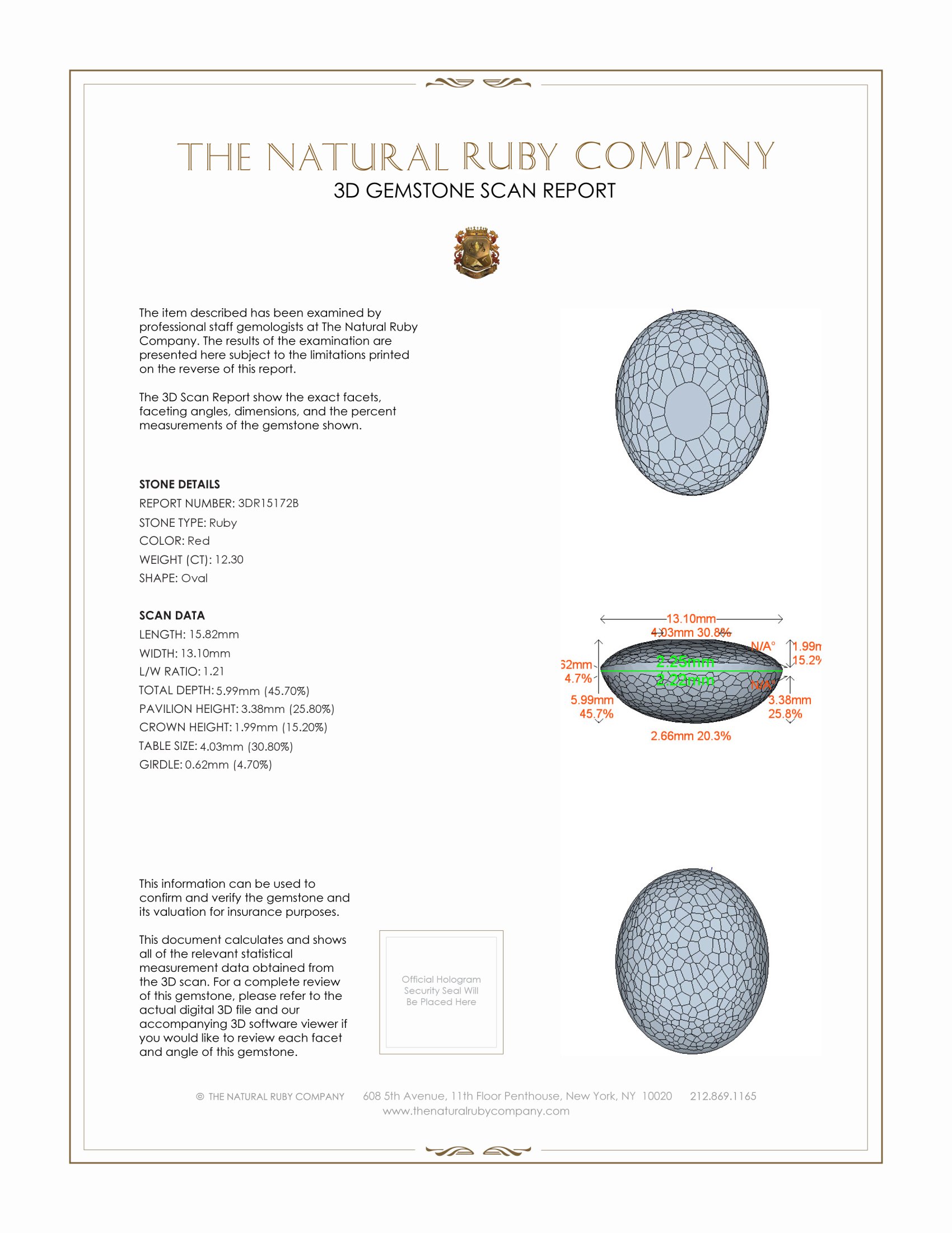 Introducing our exquisite 12.30 carat Burmese ruby, a masterpiece of nature and craftsmanship, certified by GRS. This stunning gemstone, available here at The Natural Ruby Company, is a true testament to the allure and mystique of rubies. With dimensions measuring 15.82 x 13.10 x 5.99 mm, it boasts an impressive size and commands attention, making it perfect for an elegant statement piece.