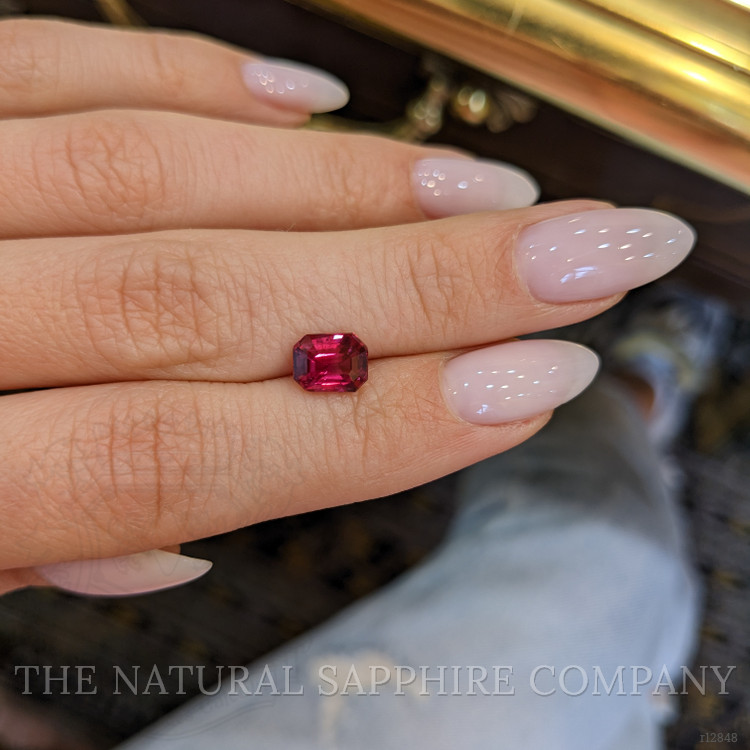 Introducing a gemstone of exceptional beauty, the transparent GIA certified Red Ruby brought to you by The Natural Ruby Company. This gem is expertly crafted into an elegant emerald cut, showcasing its inherent majesty through precise artistry. Its considerable 2.00 carat weight offers a substantial presence that is as visually impactful as it is sophisticated. With dimensions measuring 7.44 x 5.96 x 4.63 mm, the ruby strikes an exquisite balance between size and refinement, suitable for an array of sophisticated settings designed to befit a conscious consumer's collection.
