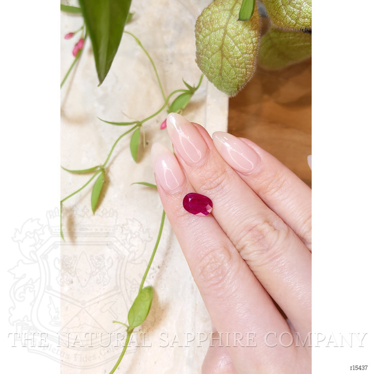From every angle the gem projects a flawless presentation, as the combination of cut precision and superior polish creates uniform light return and lively sparkle that magnifies the rich color. The oval shape lengthens the silhouette on a finger, giving a flattering profile while the well balanced proportions ensure depth of color from table to girdle. Heat treated to enhance stability and tone, this ruby maintains a natural character that appeals to both traditional connoisseurs and modern designers. When you choose this stone through The Natural Ruby Company you are choosing a gemstone that finishes a search, as its vivid saturation, transparent body, and mirror like facet work combine to deliver consistent brilliance and elegance in hand and in setting. If your aim is a memorable engagement ring or a rare acquisition that reads as both luxurious and authentic, this Mozambique ruby completes that vision.