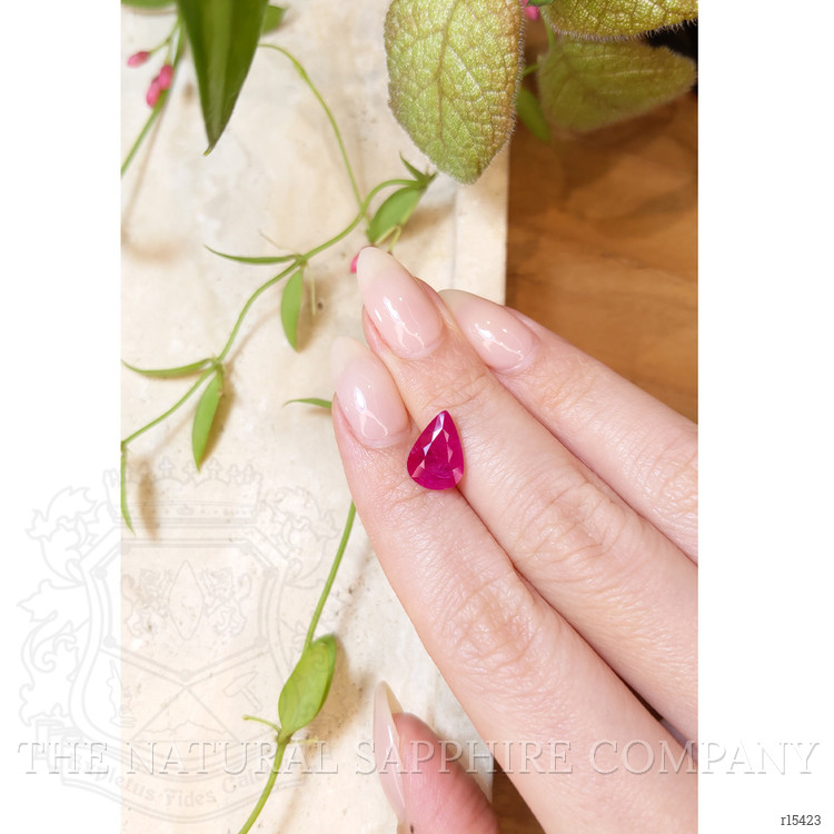 Imagine the moment you present a jewel that seems to pause time, a pear shaped ruby weighing 2.91 carats, measuring 11.85 x 8.45 x 3.48 mm, cut with a mixed brilliant style that sings with each movement, vivid in color intensity, and finished to an excellent polish. This pinkish red treasure comes to you from the rich soils of Mozambique, and has been thoughtfully heat treated to bring forth its full chromatic beauty. The silhouette of the pear shape is both classic and daring, a piece that flatters the hand and draws the eye, promising joy every time it catches the light. Envision this gem set into a ring or pendant, the faceting playing with fire and reflection, creating a daily ritual of delight and the thrill of owning something rare. At The Natural Ruby Company we cherish stones that tell stories, and this ruby is a story of warmth, elegance, and affectionate intention, perfect for moments of celebration, proposals, anniversaries, or simply the joy of gifting the extraordinary.