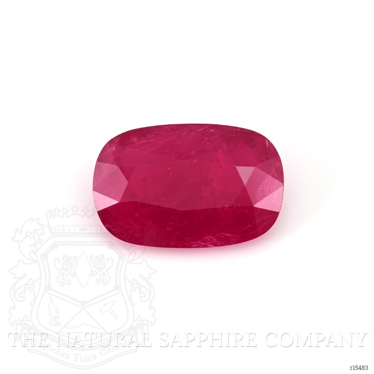 One beautiful transparent 3.38 carat cushion shape pinkish red ruby with dimensions of 11.71 x 7.70 x 3.69 mm. It has a mixed brilliant cut, and a clarity grade of included (evaluated at eye level), intense color intensity, and an excellent polish. The origin of this ruby is Mozambique.