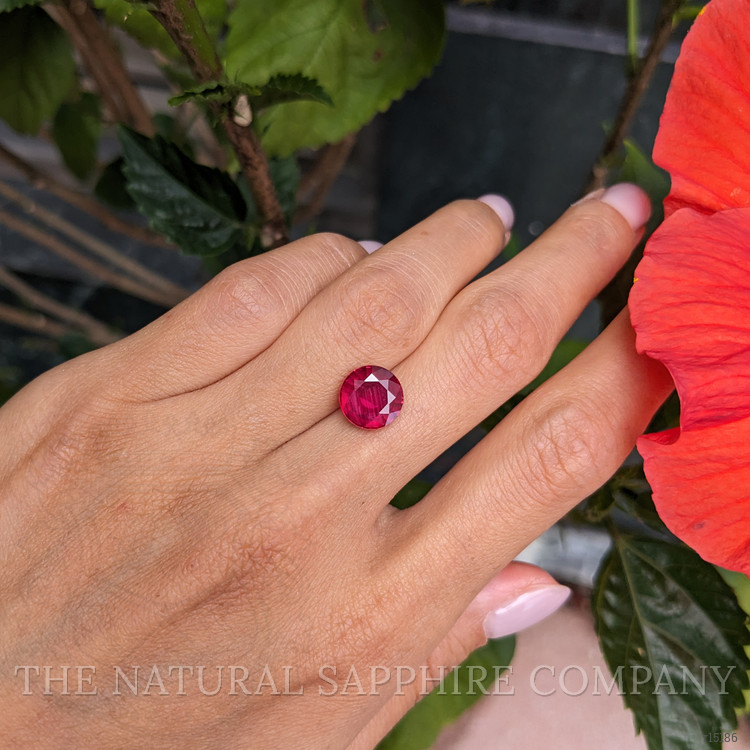 Introducing an exquisite gemstone from The Natural Ruby Company, this transparent 4.05 carat round shape red ruby measures 9.39 x 9.34 x 4.45 mm. Displaying a remarkable mixed brilliant cut, the ruby's design enhances its natural ability to reflect light, allowing for a captivating display of brilliance and fire. The precision of the cut supports the gemstone's inherent optical properties, ensuring a luminous glow that captivates observers with its vibrant red hue. This construction highlights the ruby’s depth and clarity, adding to its visual appeal.