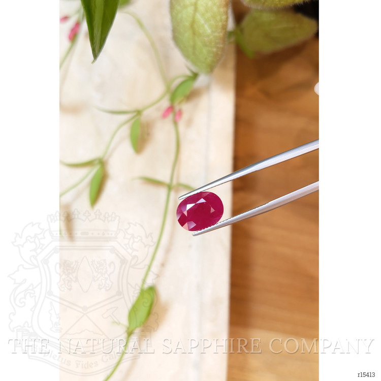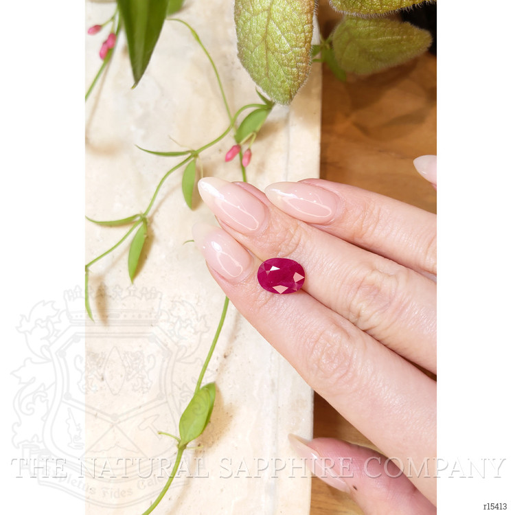 The proportions and weight of this oval ruby make it exceptionally adaptable to multiple setting styles. As a center stone in a solitaire ring it offers a commanding presence and the elongated oval shape visually lengthens the finger, while a four prong or six prong mount will display the stone with maximal light return. For everyday wear a low bezel or partial bezel will protect the girdle and vulnerable inclusions while maintaining a clean profile. The gem suits classic halo designs where a surrounding row of diamonds or colored melee will intensify the central hue, and it also adapts well to vintage inspired cluster settings where mixed cuts of accent stones can complement the mixed brilliant faceting. For modern aesthetics the stone can be mounted in tension or east west orientations, or set into a sleek pendant where the oval format reads as an elegant drop.